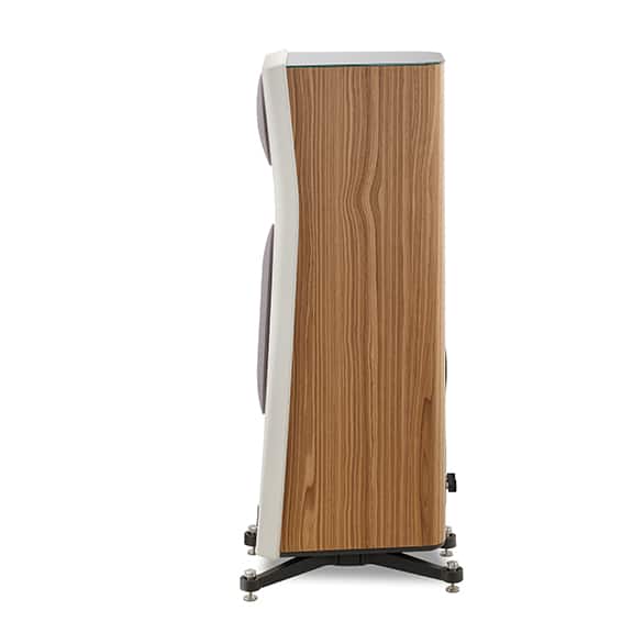 Cuando se trata de innovación, las limitaciones requieren tecnología. Para cumplir con los criterios de un diseño compacto, los ingenieros de Focal tuvieron que reducir el volumen de la cabina de graves, pero manteniendo niveles de rendimiento de alta calidad. Esto exigía la utilización de un nuevo material para el deflector, que retendría los altos niveles de rigidez necesarios, pero que, sin embargo, seguiría siendo favorable a las condiciones acústicas. A través de la investigación, los ingenieros Focal descubrieron y desarrollaron un polímero de alta densidad (HDP) monobloque: un material que es capaz de un rendimiento significativamente mayor en comparación con el MDF, siendo 70% más denso, 15% más rígido y 25% más de amortiguación. Para evitar cualquier difracción del sonido, el deflector monobloque ofrece sólo bordes lisos, permitiendo que las ondas sonoras fluyan a través de la superficie sin esfuerzo. Ésta se ha fijado a la carcasa trasera de la cabina, que está internamente reforzada y construida con contrachapado múltiple moldeado para proporcionar una rigidez aún mayor.