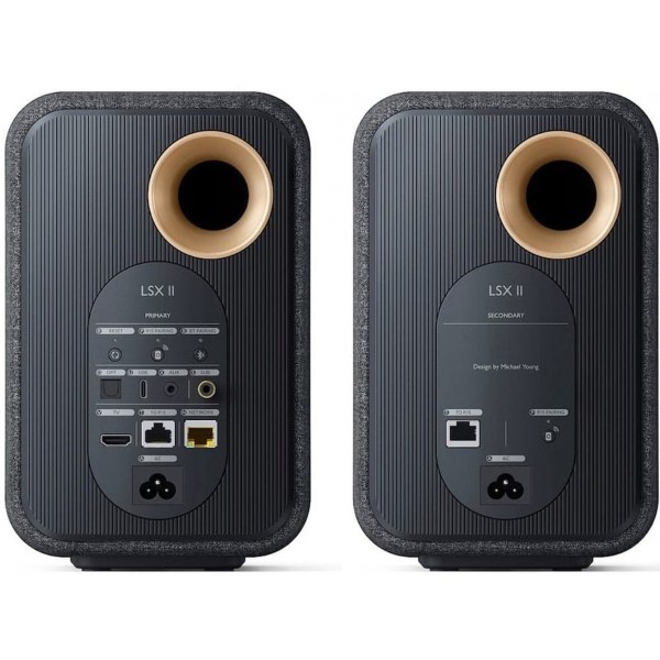 Supervisado por el reconocido diseñador de productos Michael Young, el diseño de KEF LSX II logran un buen equilibrio entre forma y función. Los detalles cuidadosamente considerados incluyen colores de acento de puerto y un LED de cambio de color para indicar sutilmente qué fuente está seleccionada.