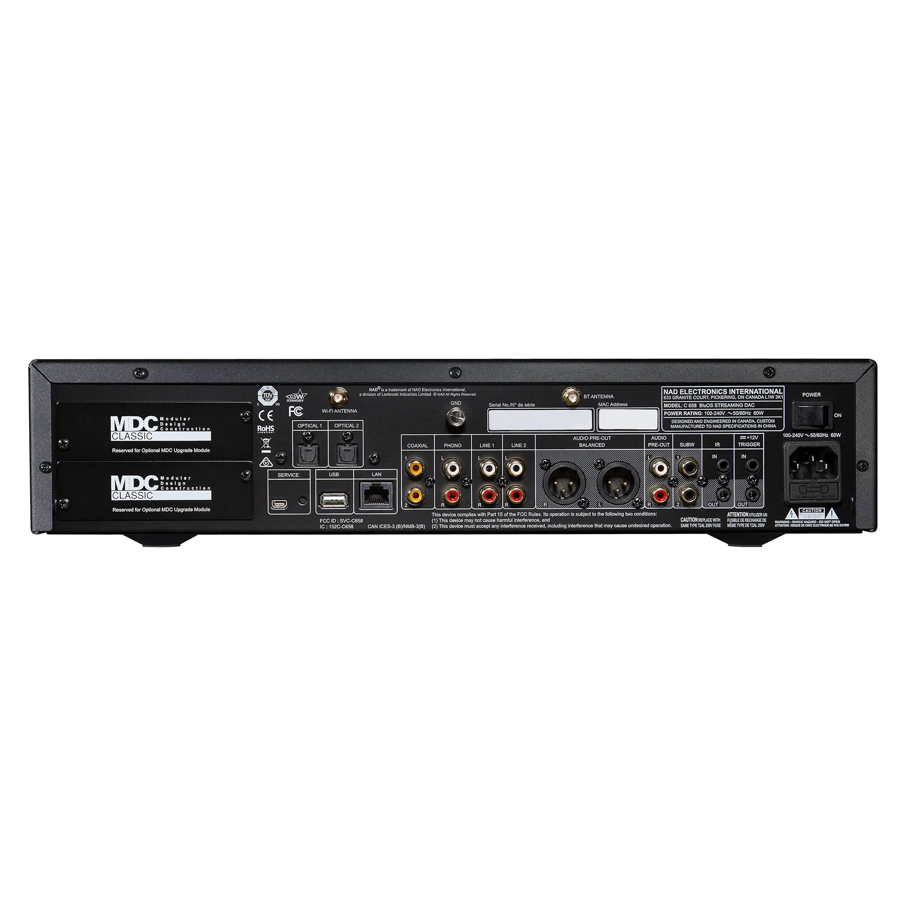 Con MDC, todos los principales circuitos digitales se pueden actualizar y reemplazar para mantener la unidad siempre joven y capaz. Esta innovación NAD es una arquitectura única que sigue el ritmo del mundo de la tecnología que cambia rápidamente. Con MDC, la capacidad de actualizar fácilmente un componente para incluir futuros formatos digitales es totalmente única y sin precedentes. Aunque la instalación y configuración de cualquier módulo MDC es sencilla, se recomienda a los consumidores que su distribuidor NAD autorizado instale esta actualización de manera profesional. El C 658 viene con dos ranuras MDC para futuras expansiones