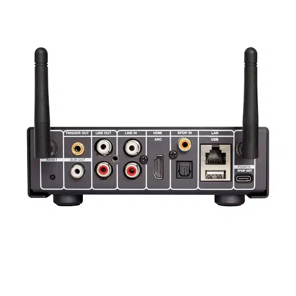 La versatilidad de WR-2 radica en su diseño arquitectónico, donde todas las entradas, Wi-Fi y datos de Bluetooth se enrutan a un módulo de CPU de transmisión para su procesamiento. Los datos digitales se pueden volver a transmitir a los receptores Wi-Fi de varias habitaciones o a un dispositivo Bluetooth o se pueden decodificar para el lineout o la salida de auriculares.