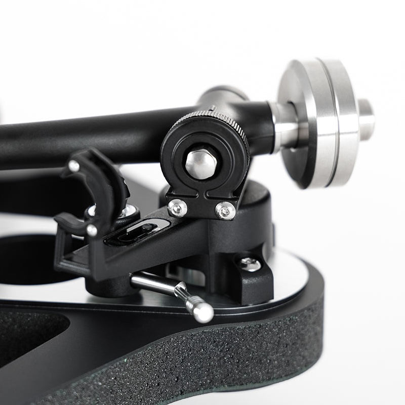 Para el nuevo RB880 hemos diseñado una estructura mejorada de cojinete vertical, un conjunto ligero de aluminio y acero inoxidable con rigidez y estabilidad mejoradas. Este brazo tiene el cojinete de tolerancia cero ajustado a menos de una milésima de milímetro, consiguiendo un movimiento sin fricción y un nivel cero de reproducción no deseada. Esta sutil pero efectiva estructura nueva sólo es visible a través de un pequeño visor en la parte trasera del recinto para el bias. Se ha usado un contrapeso de acero inoxidable más ligero que facilita el ajuste y la compatibilidad. Por último, el RB880 se completa con un nuevo cable de phono de baja capacitancia terminado con conectores de gran calidad que aseguran la mejor conexión posible.