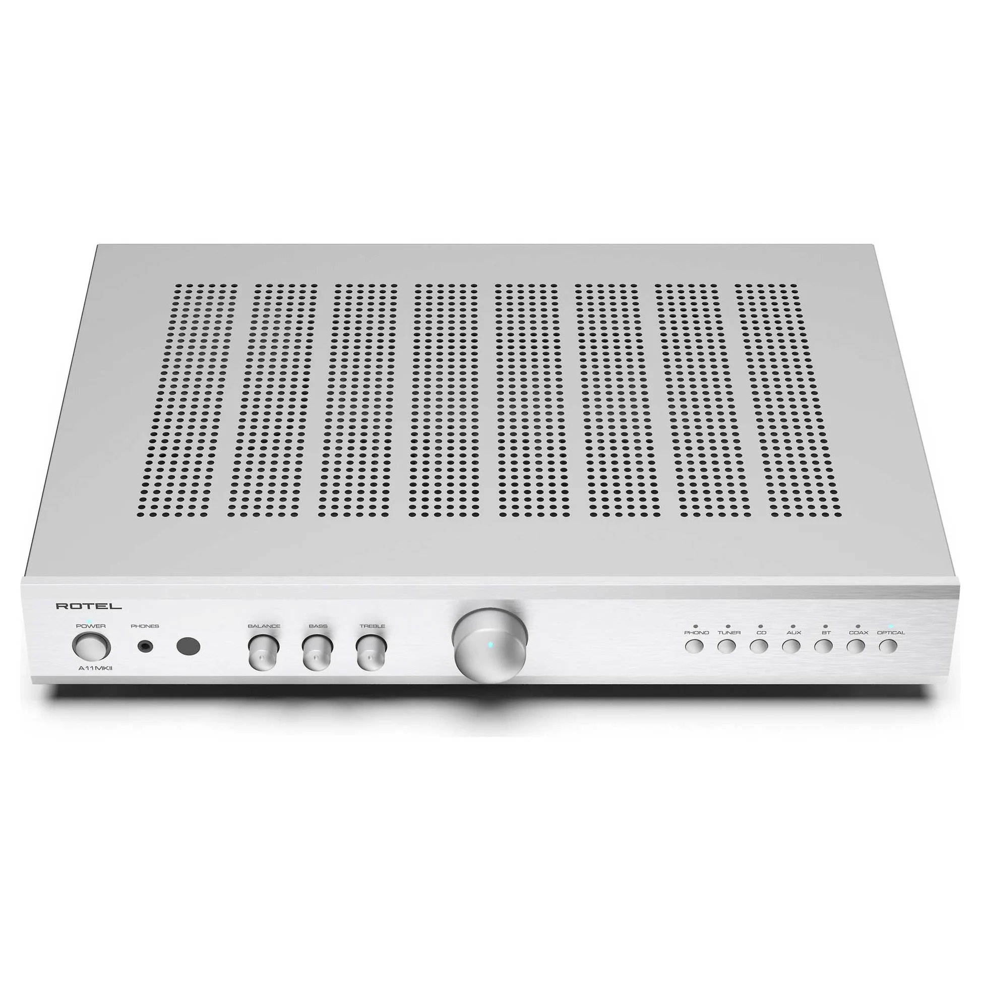 Construido en torno a una fuente de alimentación lineal con un enorme transformador de potencia toroidal fabricado por Rotel, el A11MKII ofrece una potencia de 50 Watios por canal de clase A/B a 8 ohmios, e incluso más potencia en altavoces exigentes.
