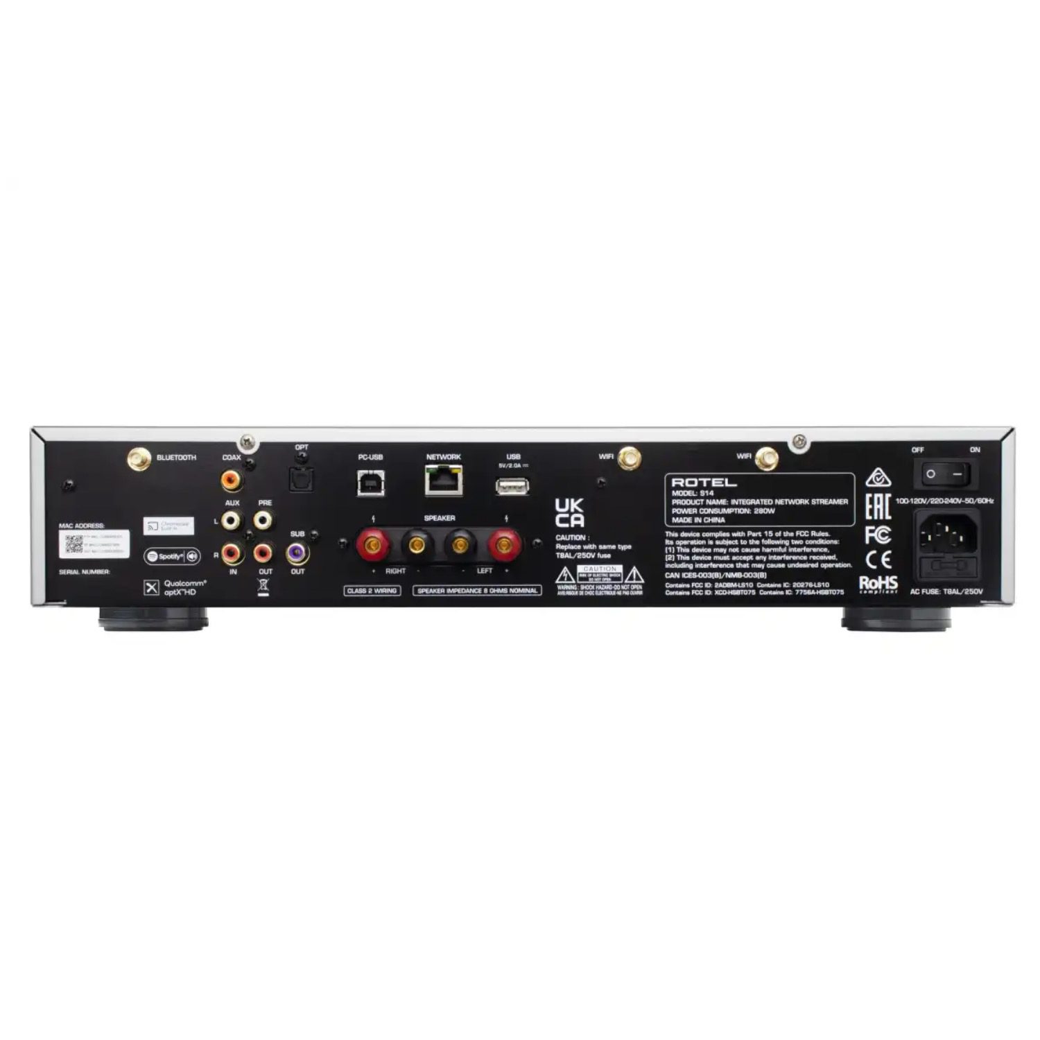 El Rotel S14 Integrated Network Streamer es una solución todo en uno que proporciona un acceso cómodo e intuitivo al catálogo casi ilimitado de música en línea. El audio de alta resolución, incluyendo MQA de Tidal y Qobuz, se reproduce con una precisión detallada a través de un DAC ESS de 32 bits que proporciona 150 vatios de potencia de clase AB a 4 ohmios.