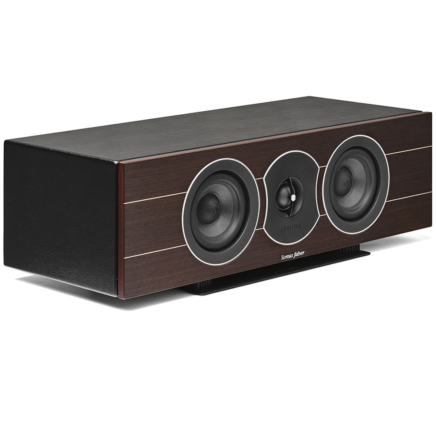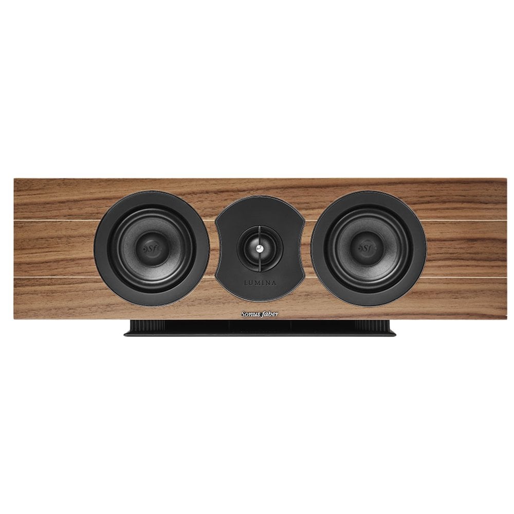 Desde el punto de vista electroacústico, la Lumina I utiliza una configuración bass-reflex de 2 vías y 3 altavoces, concretamente uno de los icónicos tweeters de cúpula de seda revestida a mano D.A.D. (Damped Apex Dome) utilizados en la gama Sonetto de Sonus Faber, y dos “midwoofers” de nuevo desarrollo equipados con un elaborado cono multifibra, siendo el conjunto gestionado por un filtro divisor de frecuencias de topología exclusiva ejecutado con componentes de grado audiófilo. En lo que concierne al acabado, al panel frontal de madera auténtica multicapa –nogal y wenge mate con inserciones de arce- hay que añadir el revestimiento del resto de paneles con el ya icónico cuero negro de Sonus Faber.